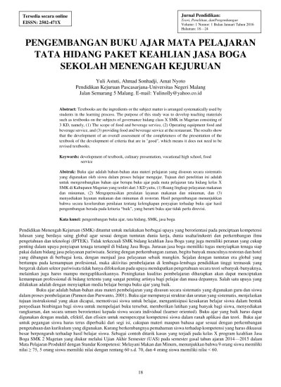 Buku tata hidang untuk smk kelas xi sesuai dengan ki kd kurikulum 2013 edisi revisi.2017. Ki/ kd kompetensi keahlian jasa boga. Silabus mata pelajaran tata hidang kelas xi, semester 1 9 tabel 1. Pertanyaan cek kemampuan 16 tabel 1.4. Silabus mata pelajaran tata hidang kelas xi, semester 1 9tabel 1.