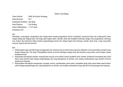 Text of silabus tata hidang. Peralatan makan dan minum serta alat hidang. Silahkan download ki/kd jasa boga dibawah ini. Kd smk paket keahlian jasa boga. Mata pelajaran dasar program keahlian tata boga.